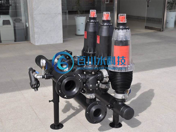 凈水設備盤式過濾機可以通過三種方式實現自動控制反洗:時間、流量和壓差信號 ,當其中一項或幾項同時達到反洗要求,將給控制器發信號,這時控制器控制反洗部件,完成反洗,反洗時每個過濾單元是交替進行的,以保證連續供水。控制器首先控制一個過濾單元進出水閥門改變水流方向,然后松開過濾盤頂部彈簧,位于盤片組中央的噴嘴沿切線噴射,使盤式旋轉,盤上及過濾頭內的污物被沖洗出去;接著控制進出水閥門恢復這個過濾單元到正常工作狀態,去反洗另一個過濾單元。因為反洗時間很短,一般至多15秒,而且是過濾單元交替進行,所以一般盤式過濾機無需一用一備。